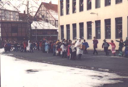 Ein fröhlicher Tag - mit einem von den Eltern hergerichteten abwechslungsreichen Buffet in zwei Räumen der Schule. Mit dem "Großen Umzug" durch die Schule ging das gelungene Rosenmontagsfest zu Ende.