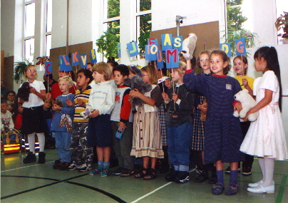 begrüßen die Zweitklässler ihre neuen Mitschülerinnen